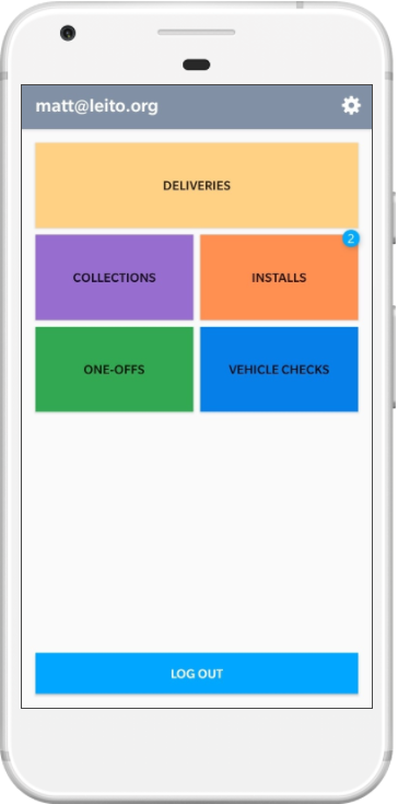 Home If you have any outstanding events that need completing, there will be a notification indicator over the top right of the corresponding event button, in this case, Installations. Click the Installations button. |
