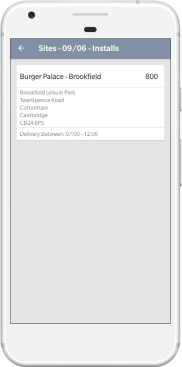 Site Details The site details will be displayed, the same as a normal delivery. Click Next to proceed. |