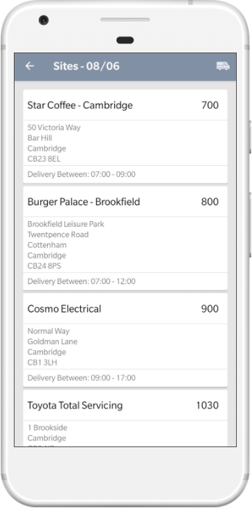 Sites From the sites screen, click the van icon in the top right of the screen. |