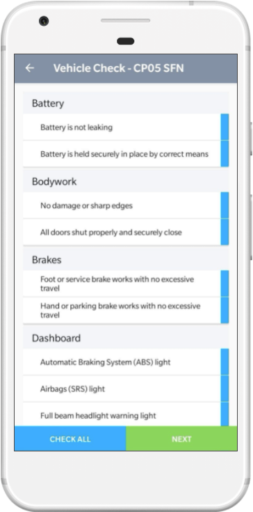 Process for recording your daily vehicle checks using Service Manager Mobile.