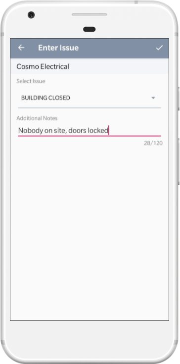 Enter Issue Select an issue from the dropdown and enter any additional notes. |