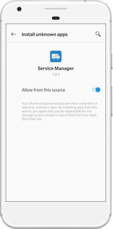 Allow If this is the first update you have installed, you will be prompted to allow the app to perform installs. Click the "Allow from this source" toggle button, then click the back button to return to the app. |